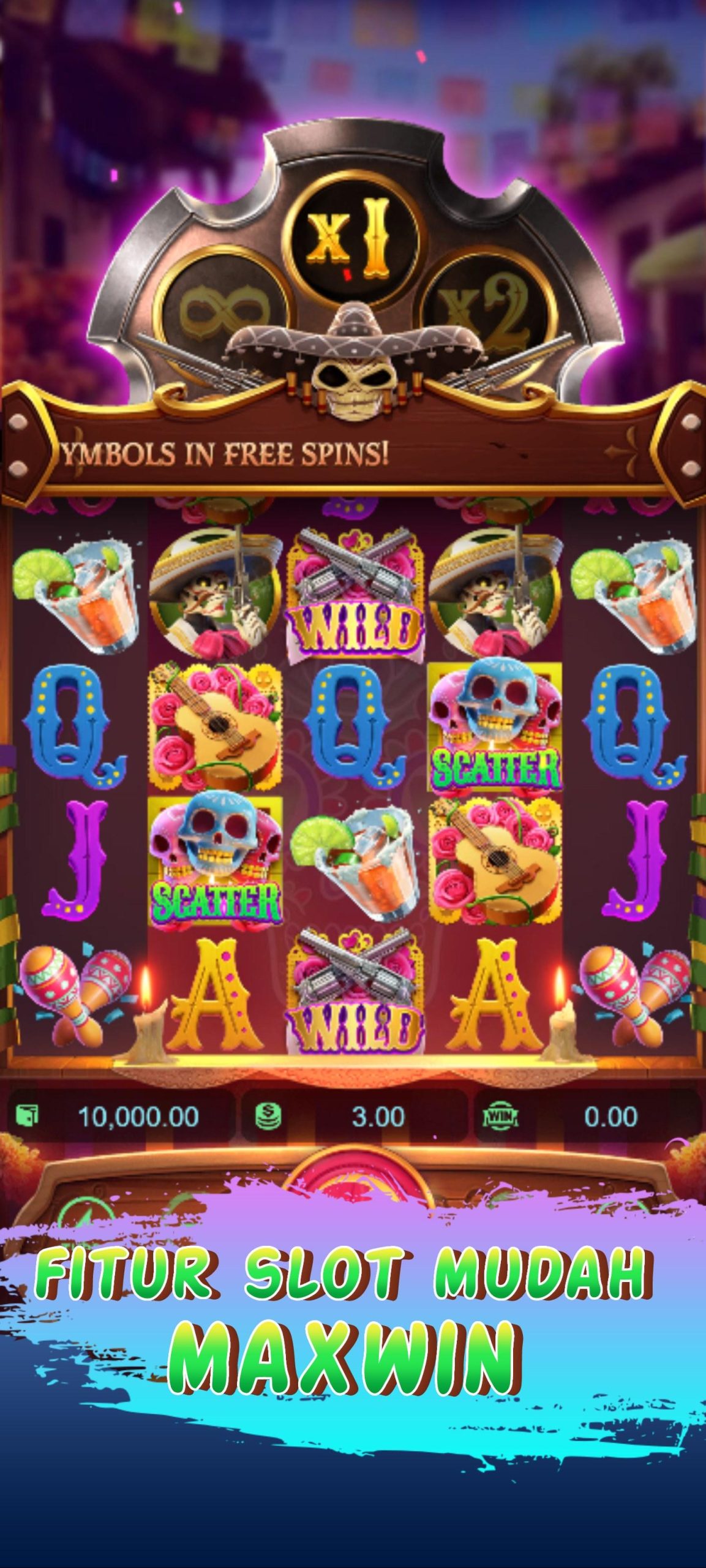 Os rolos do jogo são decorados com placas que comemoram os costumes abundantes do México, desde o famoso Dia dos Mortos até as dinâmicas bandas de mariachi. Ícones de alto valor, músicas envolventes e gráficos imersivos transportam os jogadores diretamente para o coração do México para uma experiência portuária memorável.