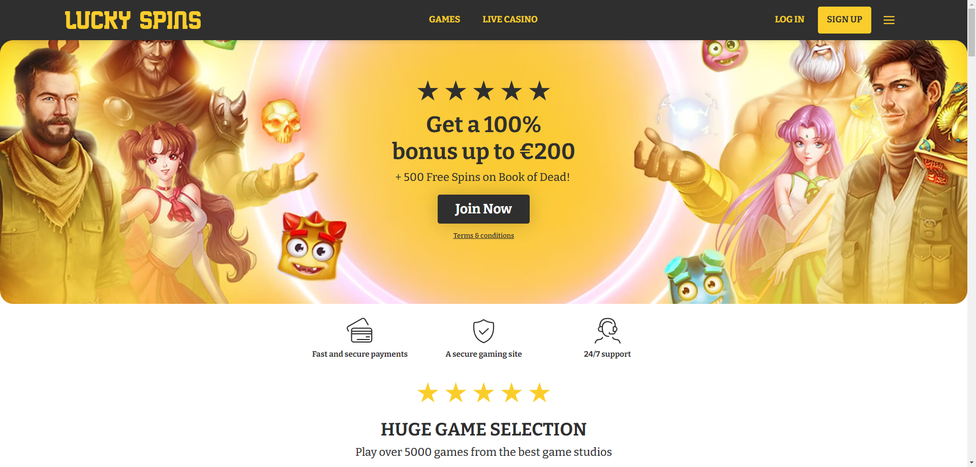 Lucky Stars tarjosi mielenkiintoisen pelikokemuksen laajan ja ensiluokkaisen pelivalikoiman kautta, joka sisälsi nettikolikkopelejä, live-pöytäpelejä ja peliohjelmia arvostetuilta pelivalmistajilta. Maksutapojen valikoiman ansiosta oli helppo löytää vaivaton vaihtoehto, valittiinpa sitten suosittu luottokortti tai vähemmän suosittuja kryptovaluuttoja.